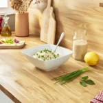 Émincez l’oignon nouveau et hachez finement la gousse d’ail.
